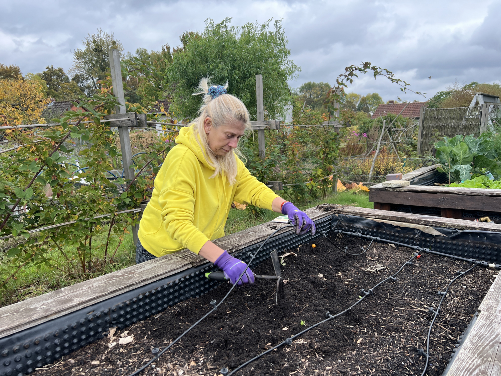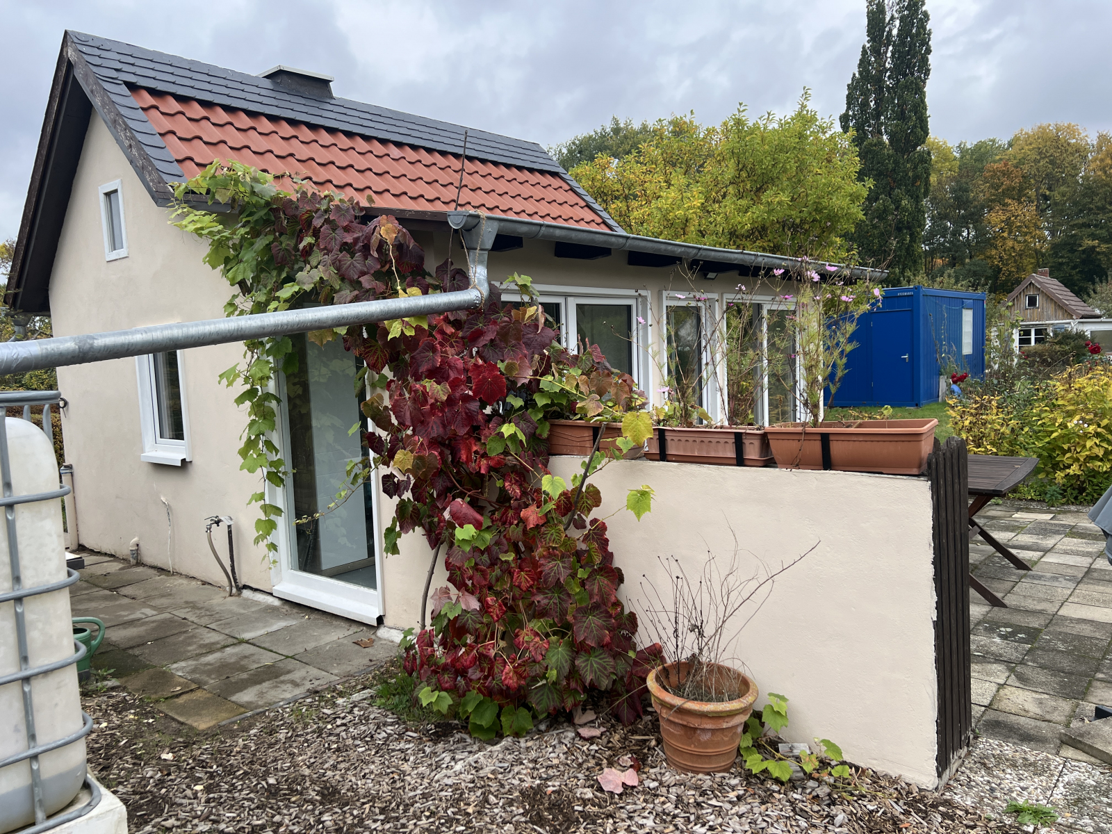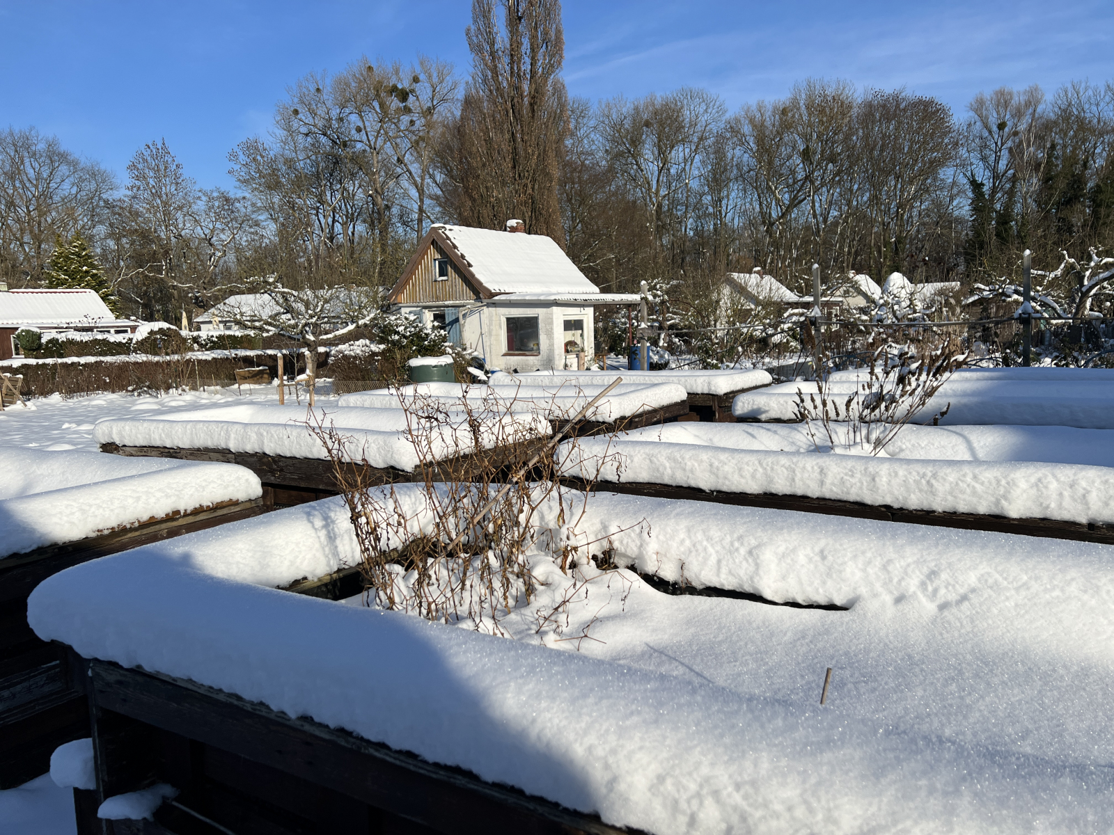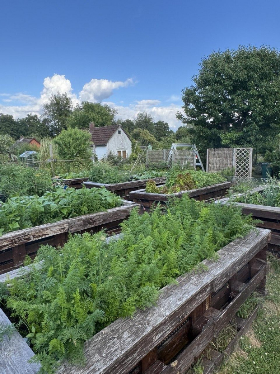 Wir haben seit Sommer 2021 zwei nebeneinander liegende Gärten im Kleingartenverein Hopfenkamp (Garten 14 und 15), einen Garten über die Stadt, einen haben wir selber gepachtet. Dank großzügiger Unterstützung von verschiedenen Seiten wird derzeit einer der Gärten fit gemacht. Das sehr marode Haus wurde komplett entkernt und neu instand gesetzt. Im zweiten Garten wurde durch die Stadt Braunschweig, statt einem Holzhaus, leider ein nicht in die Landschaft passender blauer Container aufgestellt, mit kleiner Naßzelle als Geräteschuppen